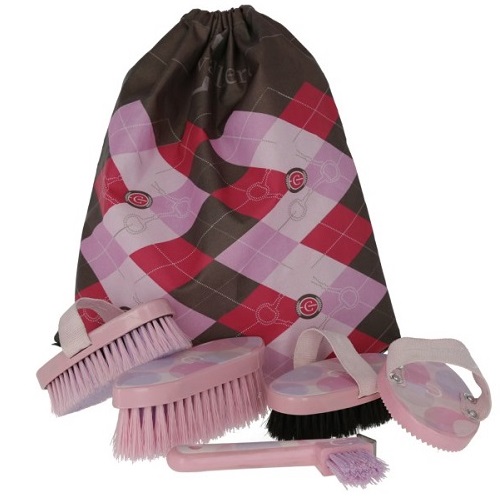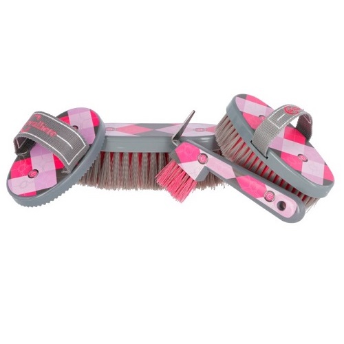 plastic curry comb, mane brush, horse brush, body brush and hoof pick